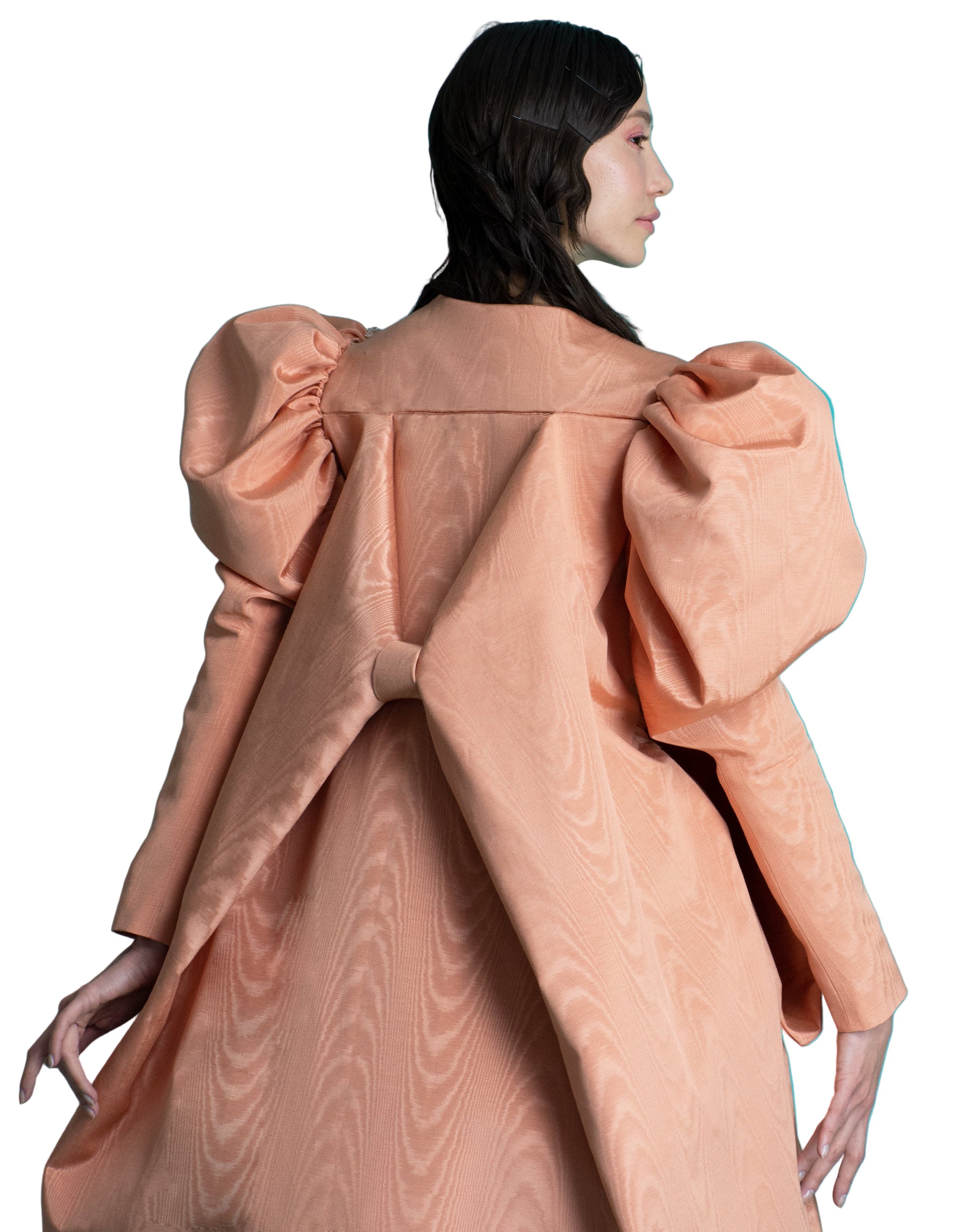 Crafted in luxurious silk faille, this made-to-order origami cocktail dress features architectural pleating inspired by the precision of paper folding. Each garment is individually created to your specifications, ensuring a truly bespoke piece. The structured folds create dynamic movement and visual interest, while the refined fabric drapes elegantly against the body. Perfect for elevated occasions where distinctive style meets timeless sophistication.ready to ship in 30 working days